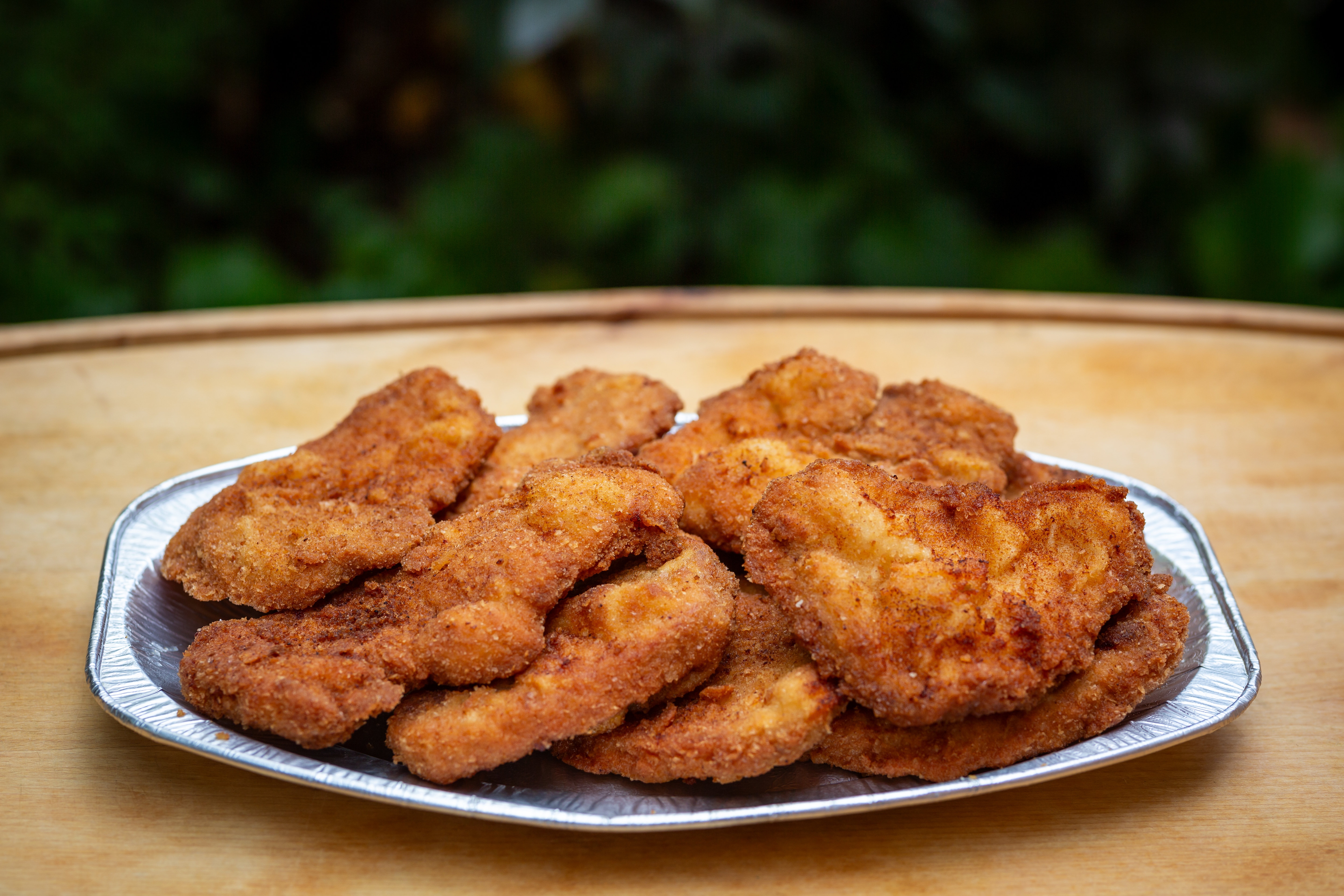 Kuřecí řízky jsou připravovány z vykostěných kuřecích stehen a vepřové řízky z pečeně.